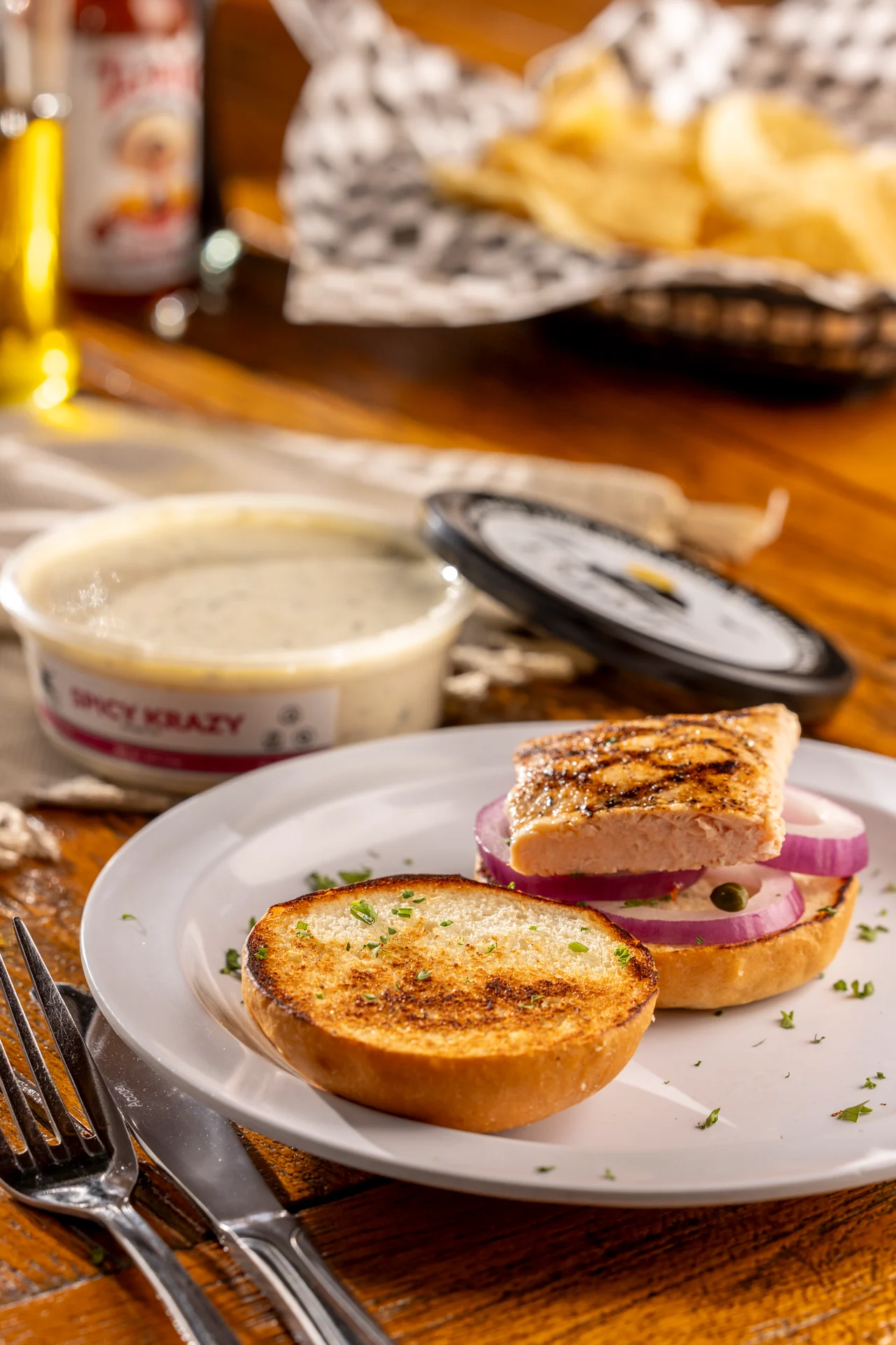 Tender lobster meat in a buttered brioche roll. Served with seasoned fries and a side of Krazy sauce