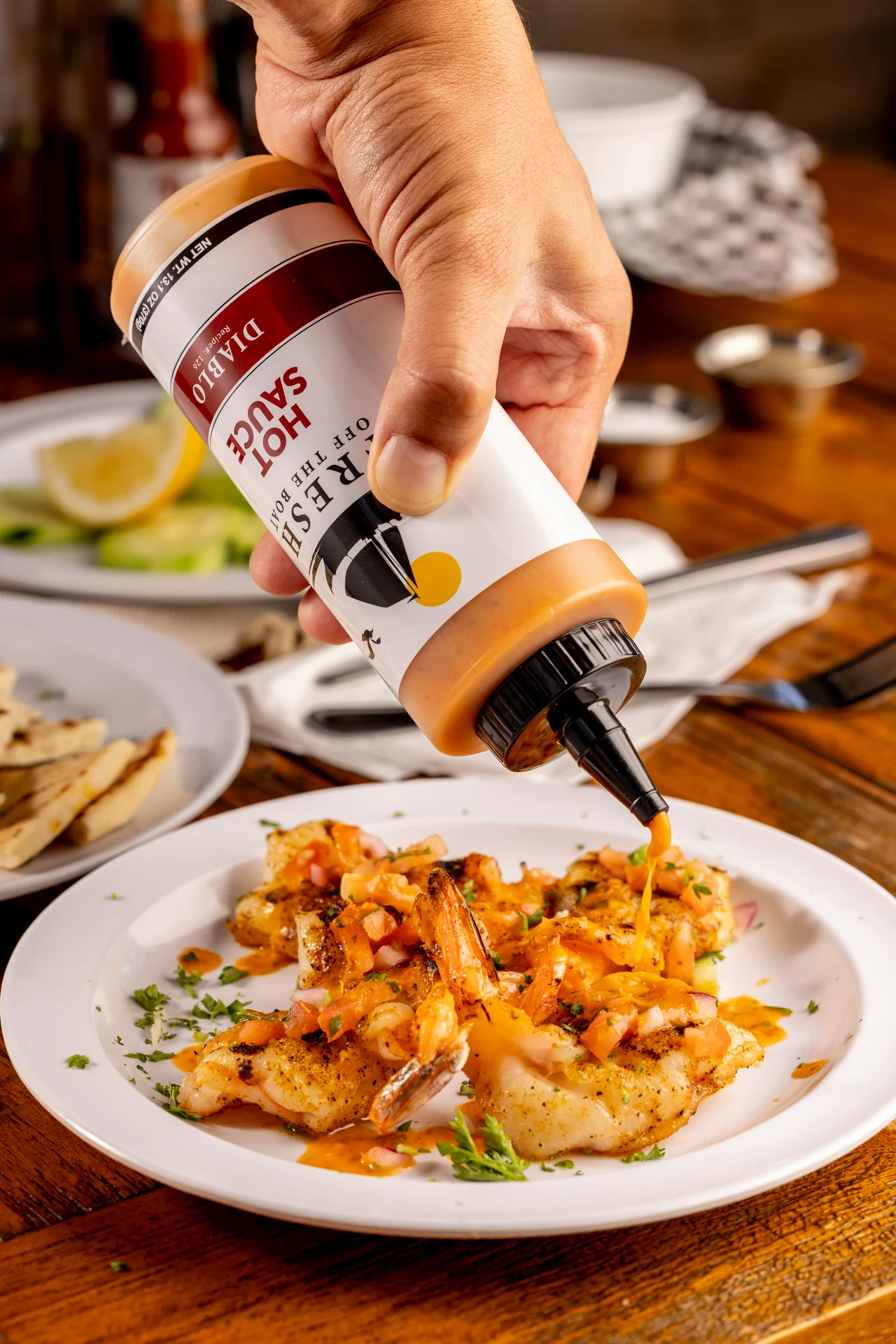 Grilled Asian seabass. Wrapped with mixed greens, tomatoes, red onions, pickles, pico de gallo, Veracruzano and garlic sauce