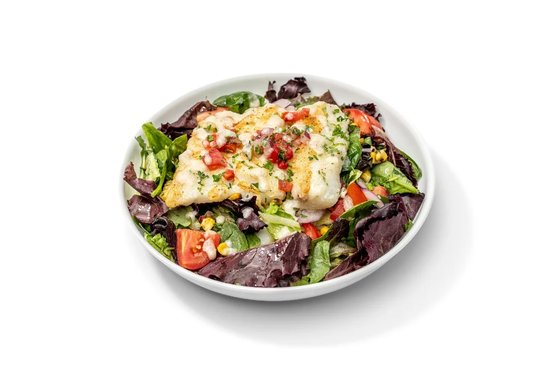 Grilled Alaskan cod on a bed of pinto beans, grilled veggies, pico de gallo, jack cheese & Veracruzano sauce.