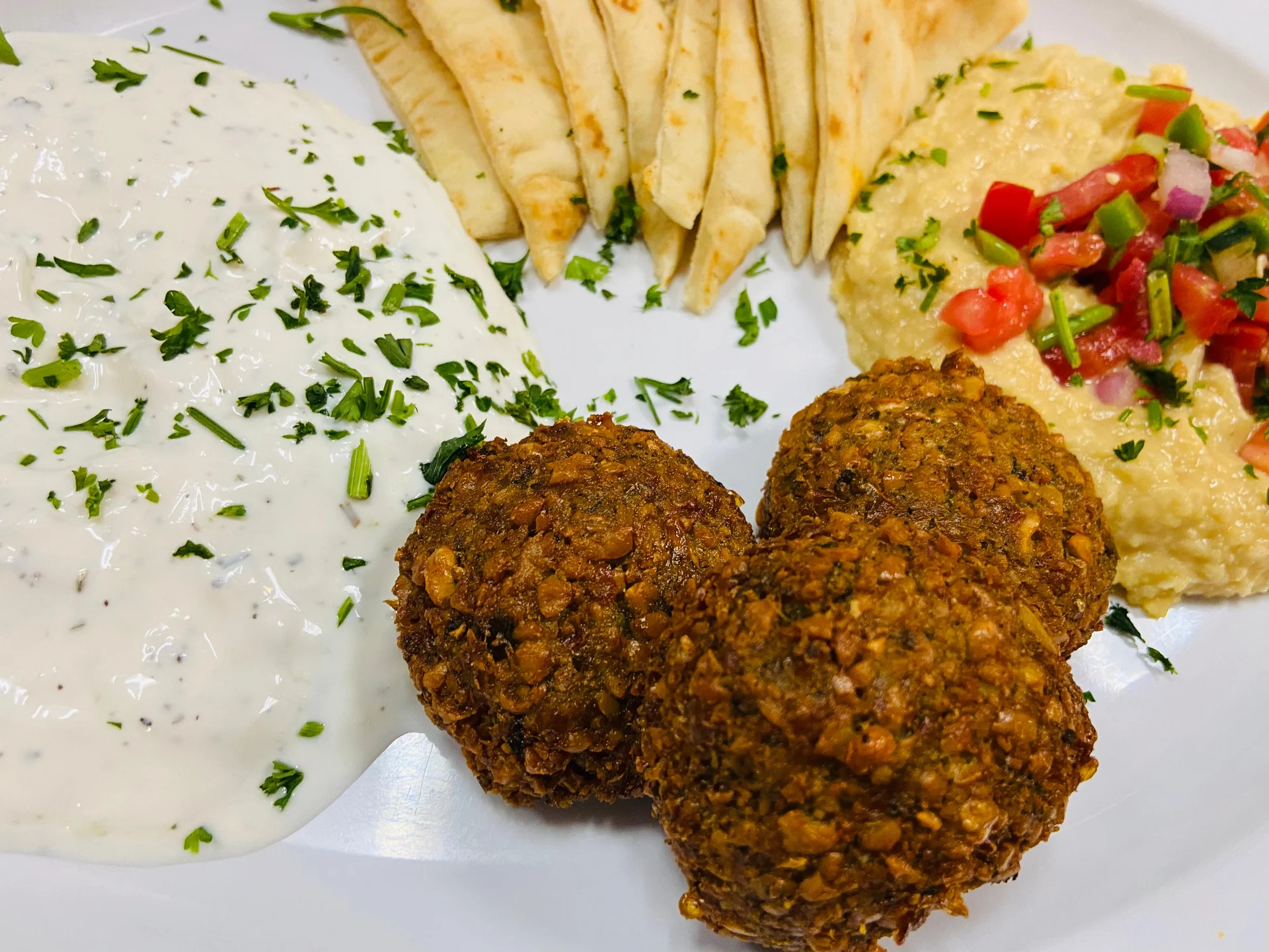 3 falafels with tzatziki, hummus & grilled pita