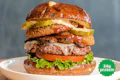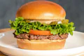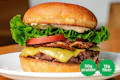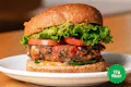 House-seasoned smash patty, organic tempeh bacon, dill pickles, choice of cheese and choice of sauce (house-made special sauce, egg-free mayo, ketchup, yellow mustard) on a brioche bun. | 30g protein | 15g fiber | Contains: Soy, Gluten, Garlic, Seeds, Coconut