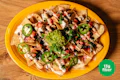 Crisp, fresh-fried organic tortilla chips topped with house-made queso, Tex-Mex beefy crumbles or chopped grilled chik’n, ranchero beans, house-made guacamole, pico de gallo, and jalapeños. Finished with a drizzle of tangy pepper crema. | Add sour cream +$2 | 21-24g protein | 13g fiber | Contains: Soy, Garlic, Tree Nuts, Seeds, Coconut