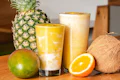 A vibrant elixir of orange, coconut, mango, pineapple, ginger, and turmeric. Infused with tart cherry and ashwagandha to encourage strength, endurance, and recovery. | 10g protein | Contains: coconut, legumes.