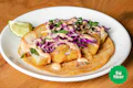 Crispy battered fish(less) filets or organic crispy tofu, creamy house-made jalapeño slaw, cilantro, and pico de gallo. | 8-14g protein | 4g fiber